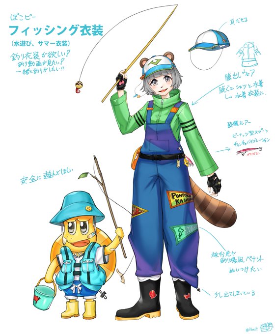 釣り動画や水辺探索用で考えました! #ぽこピー新衣装 #ぽこあーと