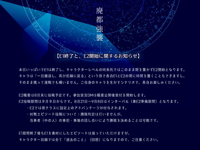 本日いっぱいでE1は期間終了です。 2枚目以降はE2予告:キャラクターを少しだけお借りしました@krow0930 ·ウィリスくん @iku_4 ルティちゃん @enkazerue シュリヒトくん +@yvesmiora_ ロウジャさん。 #まじ・ないE1 #まじ・ないE2