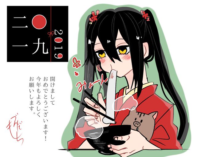 #まどふぁい版1週間ドローイング あけましておめでとうございます! 【年越し】ということでルカちゃんはお餅食べてると思います! 今年もづんだ、ルカちゃん共によろしくお願いします!