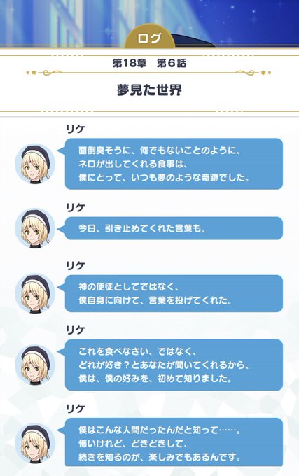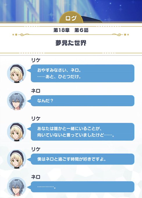 料理人という膜を通してほかの人たちとの関わりを持ってるネロにはこの言葉がとても嬉しく感じたんじゃないかな、って思います。ネロとリケがお互いに作用してそれぞれ「自分」を知っていく感じが素敵💭