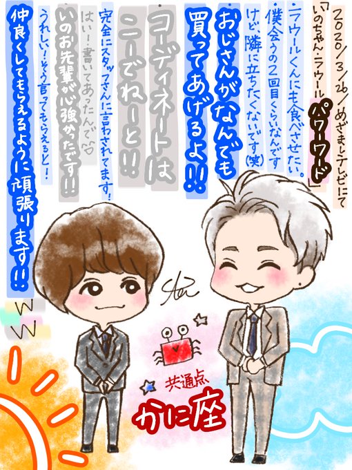 @cx_mezamashi #めざましおうちで楽しもう #めざましテレビ #いのちゃんに見てほしい 絵を描いてます。 Hey! Say! JUMPファンの私は特に木曜日のめざましを楽しみにしてます☀️ いのちゃんとかやちゃんの掛け合いがいつも楽しくて好きです😂 ゲストで後輩がきた時のいのちゃんの優しい先輩感も好き!