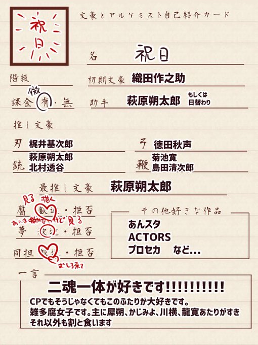 #文アル自己紹介カード
