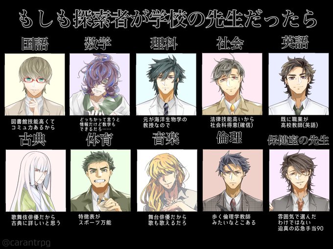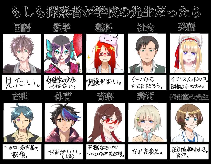 さっき回ってきた『もしも探索者が学校の先生だったら』をうちの子たちでやってみました⋆⸜(* ॑꒳ ॑* )⸝