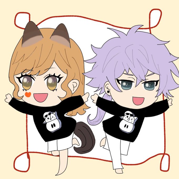 華緑青さん @papirio_yuri からイラストを頂いたので、せっかくだからと八岐 カイシューさんのデフォルメ絵を描いて並べてみました