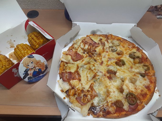 最後のおねシン聴きながら食べるピザとりんごサイダーはうまい🍕🍎