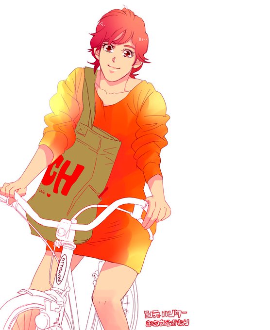 朝から香ちゃん!!!ちゃりんこは素材お借りしました!!!!りょおんとこに行ってながいながいくだり道を自転車にのせて、ゆっくりゆっくり下ってください(うしろには獠)