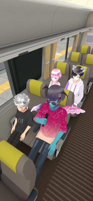廻玖さん、ナユタン、にまさん、ソフィさん&ゾフィさんでゆるがば旅行~🚃☝️✨なんかマイク持ってて、ツアコンみたいwww