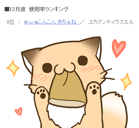 ฅ•ω•ฅこんこん きちゅね LINEすたんぷ 12がつ しようりつらんきんぐ 8位! ありがとう きちゅね!