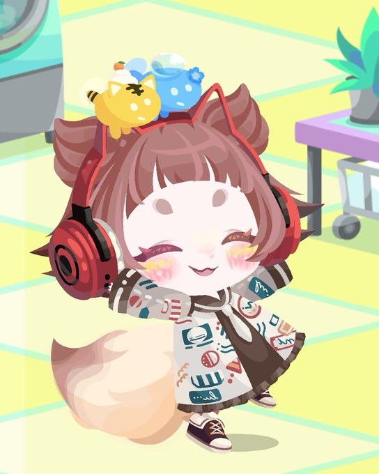 ioさんのレトロロゴセーラーとヘドホーーンにおめめは よもたゆう さんのコウモリオッドアイ🌟