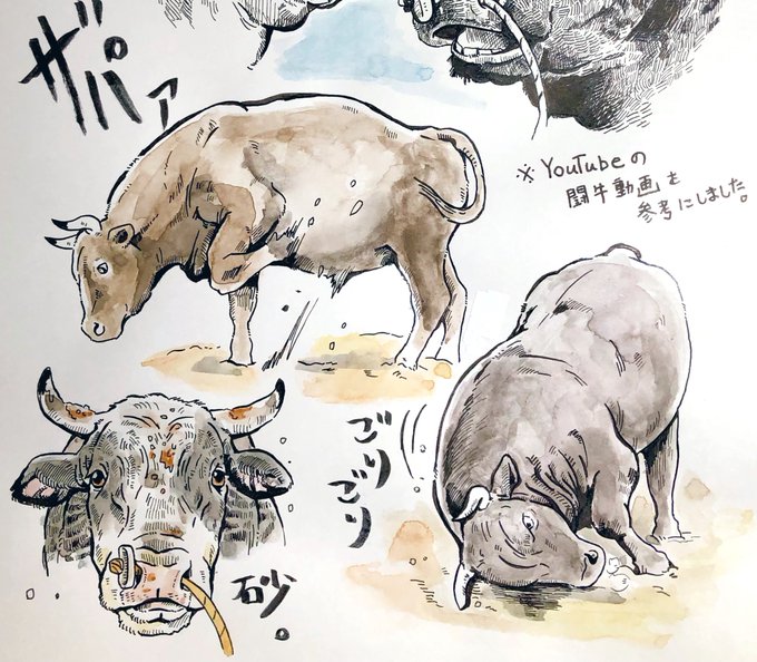 らくがき♂牛(闘牛) ※YouTubeの動画を参考にしました🐃
