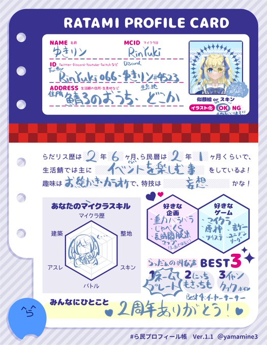 #ら民プロフィール帳