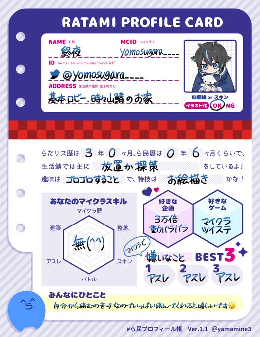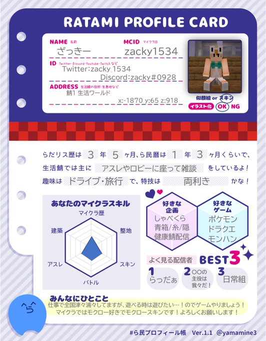 #ら民プロフィール帳 #ら民
