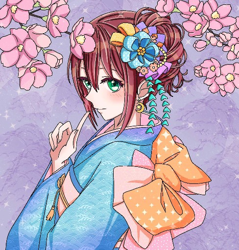 一周年の時はお市ちゃん描いたので、今回は智妍ちゃんに花見をしてもらいました!