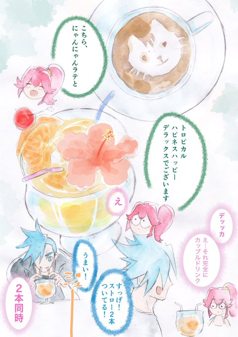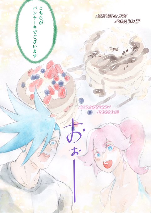 あした出るかわからないコピ本のサンプルです 「俺たち付き合ってないんで!」A5/16p/200円 アイガロがパンケーキ食べる話です 気が狂ってるんでフルカラーです