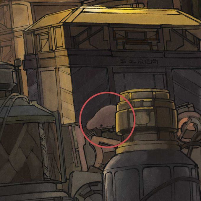 私の絵の中には時々、つちのこ(←アイコンのアレ。この世界では犬猫と同等の扱いです)が目立たないように仕込んであります。形状は大小、グッズや看板だったりと様々です(入っていない絵も沢山あります)。今回の個展でもこの作法に則って会場内にひっそりと仕込んであります。#世界の果てへ