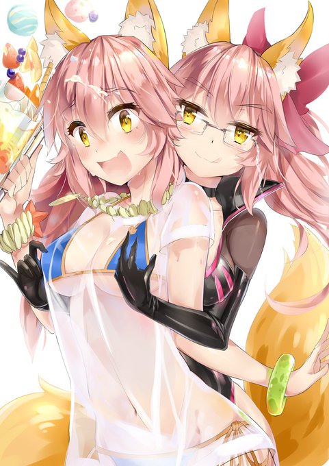 水着玉藻とアサ玉藻 #玉藻の前 #Fate/GrandOrder #FGO #狐耳 #水着 #アサ狐 #ボディスーツ #C狐 https://t.co/pzoqMUYR8v