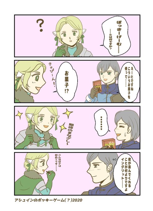 アシュインでポッキーゲーム(?) #アッシュ=デュラン #イングリット=ブランドル=ガラテア #風花雪月 #アシュイン https://t.co/EJBAiugBIf