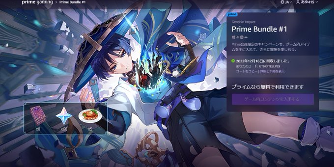 原神ユーザーのアマプラ会員の人〜原石60個もらえるよ〜!