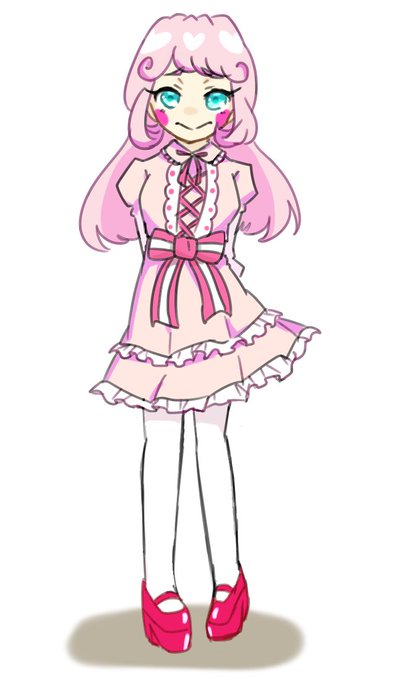 > おにんぎょう(ピンク)とお揃いコーデのアリゲッティ擬人化お願いします。