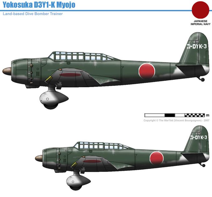 #アルミ貼り99 明星 D3Y1-K (仮称九九式練習用爆撃機一二型の木製型) 主尾翼は直線テーパー翼 胴体が約1.3m延長。併せて風防も延長。
