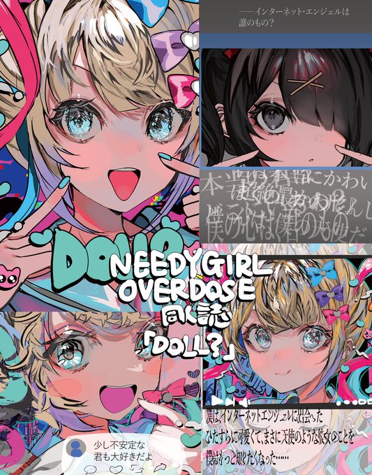冬コミ C103で頒布する NEEDY GIRL OVERDOSEのイラスト本のサンプルです。 ツイッターに載せたイラスト+描きおろしを中心にストーリー仕立てで再構成されています。 ✝️インターネットエンジェル、超てんちゃんに魅入られた一人の視聴者が『本当の彼女』を追い求めてたどり着いた先は……✝️ #C103