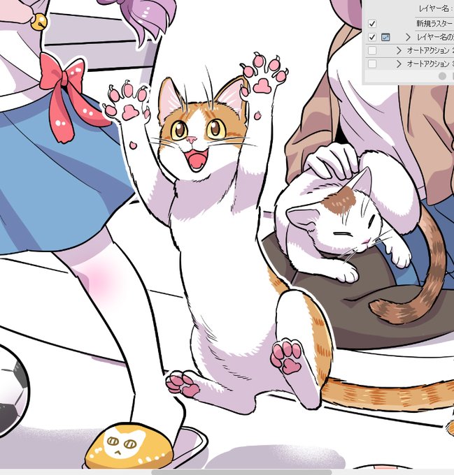 載せていただいているのはグレーですが、元絵は割とカラーで描いてます(この方が色々と便利で…)途中確認用のスクショを