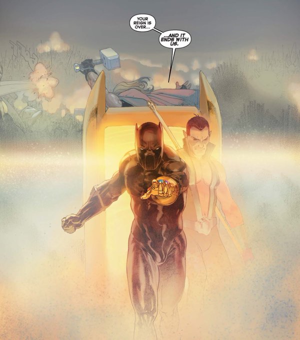 【Thor 1】ソー誌作家ドニー・ケイツ氏「シルバーサーファーが5つの星を隠してる事や、ギャラクタスがアスガルドに降って来て星疫病が来ると告げるOPは、僕が師と崇めるジム・スターリンのインフィニティ・ガントレットへのオマージュ」[画像:ソー誌1号+IG誌試し読み頁引用]https://t.co/GkoQfjjJ53
