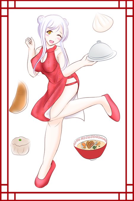 お団子チャイナドレスのイヴ描けた〜🇨🇳👗✨