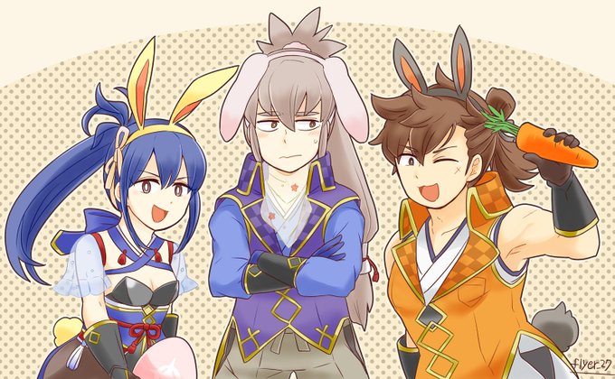 FEHでイースター祭り開催中なのでベルンの皆さまにも盛り上がっていただいた!代表でブルーニャとギネヴィアにバニー衣装着てもらった🐰