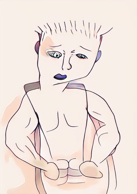 いつも私が使ってる鉛筆線水彩風の塗り方で描いたイ卜トイさん(15分)とペン線アニメ風の塗りで描いたイ卜トイさん(20分)です。