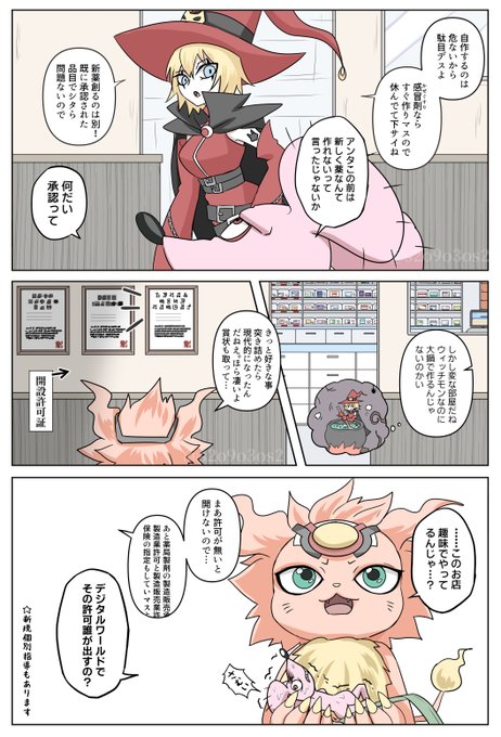 ちょこっと裏話。今回のキャンドモンのイラストは過去に収録されたウィザーモン⬇︎と同じ背景(魔道図書館)で、勉強をするウィザーモンの邪魔をするためにキャンドモンを引き連れて騒ぐウィッチモンと、騒ぎを鎮めようと躍起になる図書館管理人のバアルモンが背景にいます👀