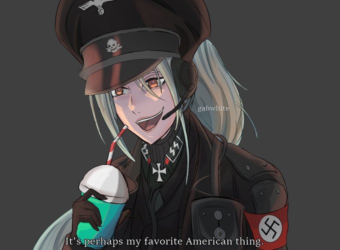 Another drawing of the nazi waifu oc that came from a fanart of Wolfenstein, inspired by the kommandant that loves milkshake.