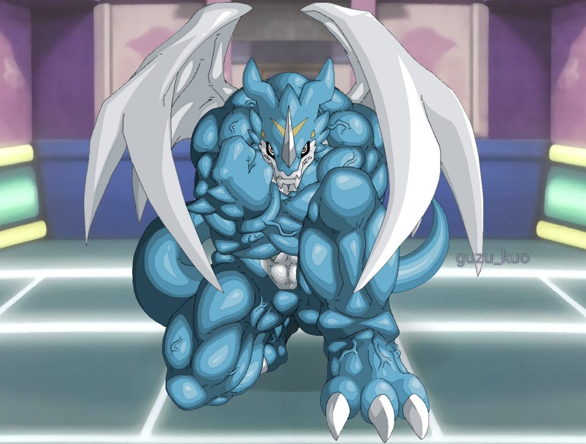 遊戯王DM王国編のデュエルリングのフィールドに召喚された感じで描きました!!こういうでがっさのエクスブイモンもいいですね