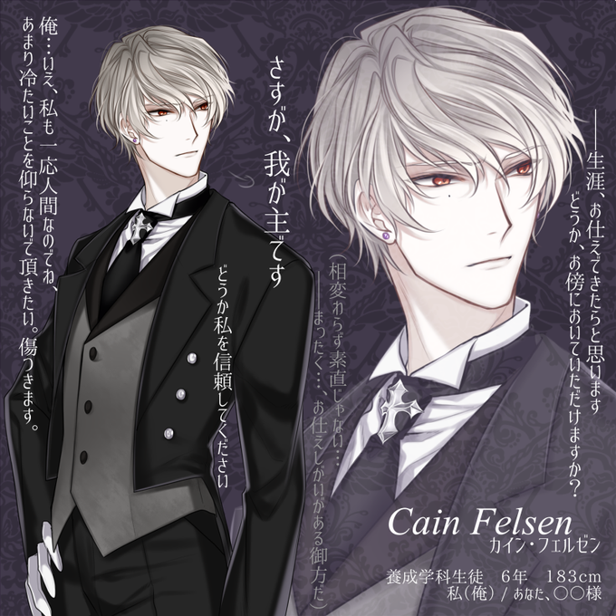 素敵企画様【@E_delstein 】に二人目失礼いたします!執事で想い人な素敵な子はいますが友人等なかよくしていただければと!