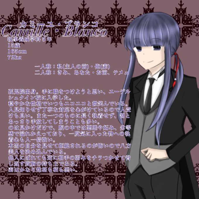 素敵企画様(@E_delstein )に失礼いたします!ツンデレ寂しがり屋のジャンカルロ・ベッロをよろしくお願い致します^^主従/恋人ともにご縁頂いております。お友達など関係できたらと思います!是非仲良くしてくださるとうれしいです✨✨ #エデ校CS #エデ校6年生 #エデ校主人