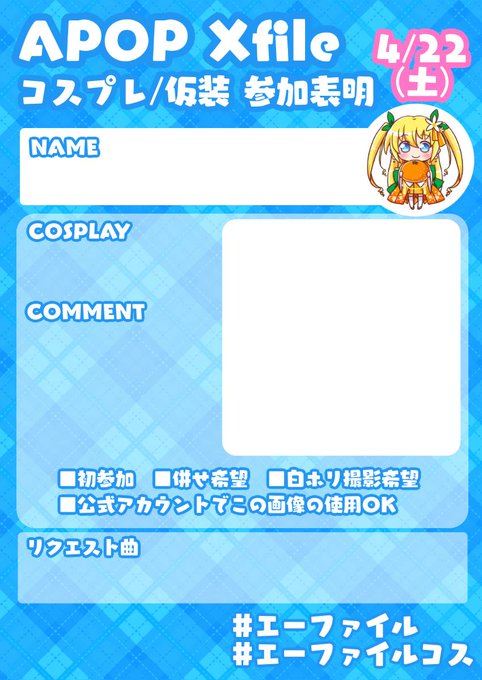 #エーファイルコス や #エーファイルリクエスト でいっぱいツイートしてね🏷️