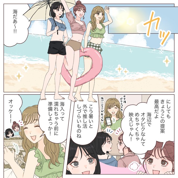 イマドキ大学生が色々なオタクと出会う話45 「海辺でオタピク!」 #漫画が読めるハッシュタグ #オタ活漫画