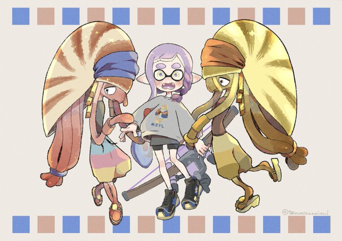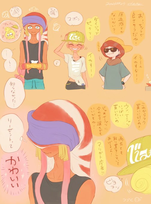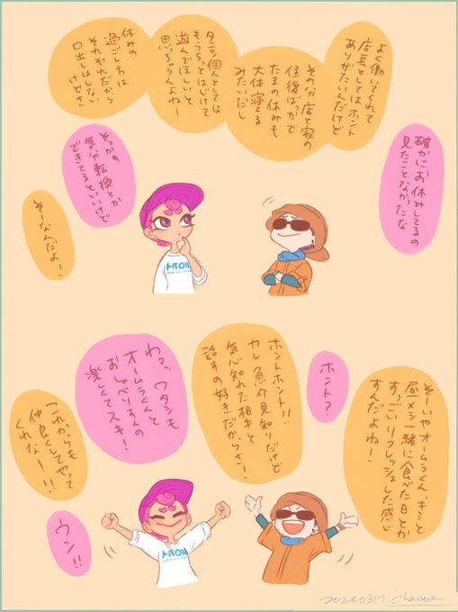 お祝い絵にオリキャラちゃん達だけでなく、示月さんの大好きなオームラくん(とタニシ店長)を描きました!🐚