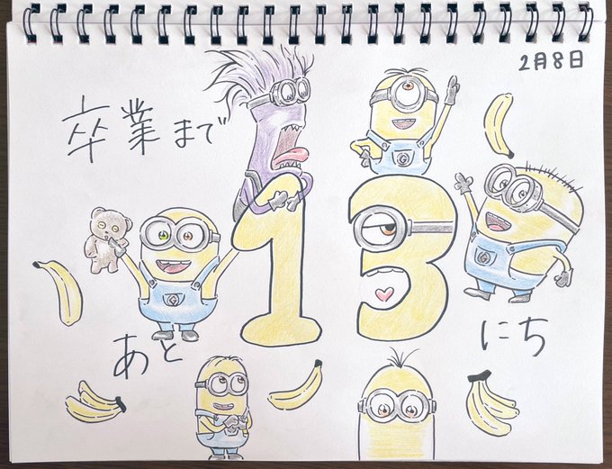 似顔絵30枚完了した矢先、高校卒業までのカウントダウンカレンダー(13枚)を描いて欲しいと頼まれてしまった…w レポートもあるから新しい絵描けない😭
