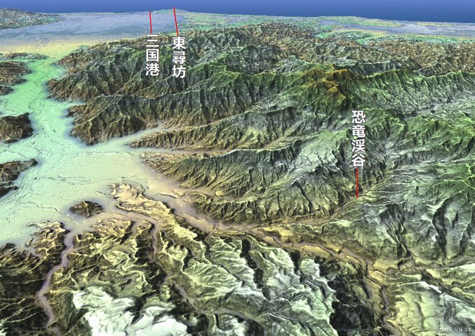 ブラタモリ『東尋坊・恐竜』編。ほかの場所の柱状節理より大きい柱が見られるのが特徴の東尋坊は、地下でゆっくりマグマが冷えたことによるものとのこと。恐竜の化石が大量に発見される恐竜渓谷と。番組では模型で登場した、カシミール3Dスーパー地形セットで。#ブラタモリ