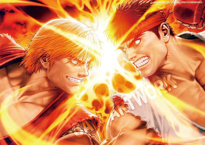 ストリートファイター20周年画集用の見開きイラストです。暑苦しいですね~(森気楼)#カプコンアートワーク #カプコンデザイン室 #SF35th