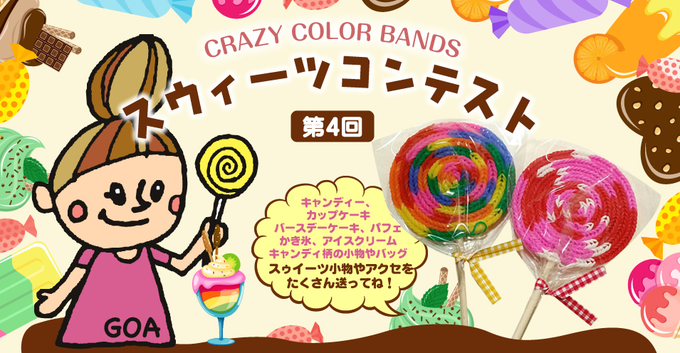 スウィーツコンテストスタート!クレイジーカラーバンドを使ってキュートで美味しそうなお菓子のマスコットやアクセを作って写真で送ってください!入賞者には今回もまた豪華賞品あり♪ご応募はこちら!http://t.co/VAh1KjcM1T