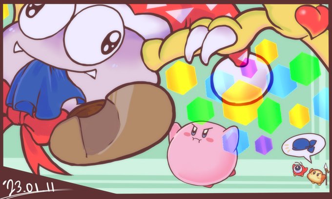 去年2月のWiiデラでカービィにはまってから色々描いてるけど、はじめて描いたカービィから最近のカービィまで再掲 最近流行りのカービィ二次創作と比べて目が小さめのスパデラ風味なカービィが多い気がするね