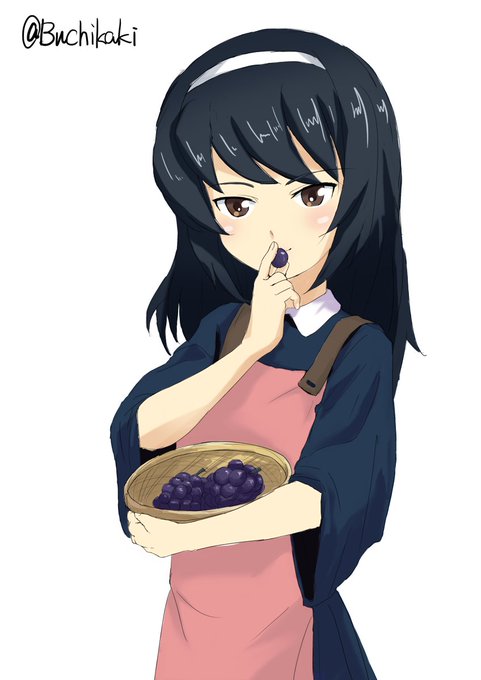 お題テーマ「エプロン姿」で冷泉麻子さん この前実家から巨峰が届いたので