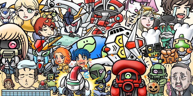今まで描いたSDガンダムパロディをツメツメにするだけでも結構見ごたえあるかも!? #とにかくワチャーッと集合してる絵を晒す見た人もやる