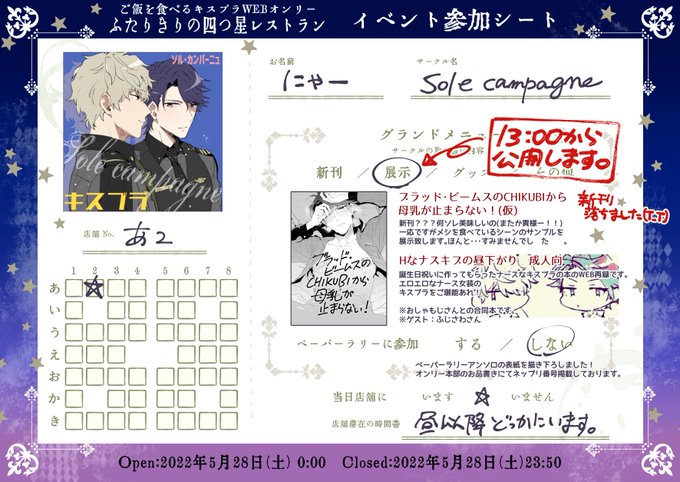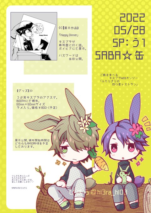 ご飯を食べるキスブラWEBオンリー「ふたりきりの四つ星レストラン」開催おめでとうございます!ありがとうございます!