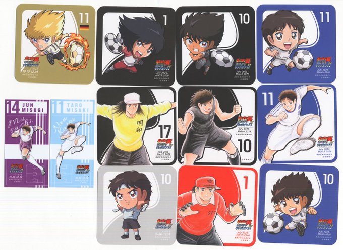 金町に戻り、肉Barカナデリカで夕飯と日向のタイガーショットシュークリーム。五角形のチョコでサッカーボール仕様に。皿にもチョコで集中線が😆チョコがカリッとアクセントになってるのが美味しい。コースター第1弾と合わせて揃ったかと思ったらミニキャラ三杉がいなくて残念😢