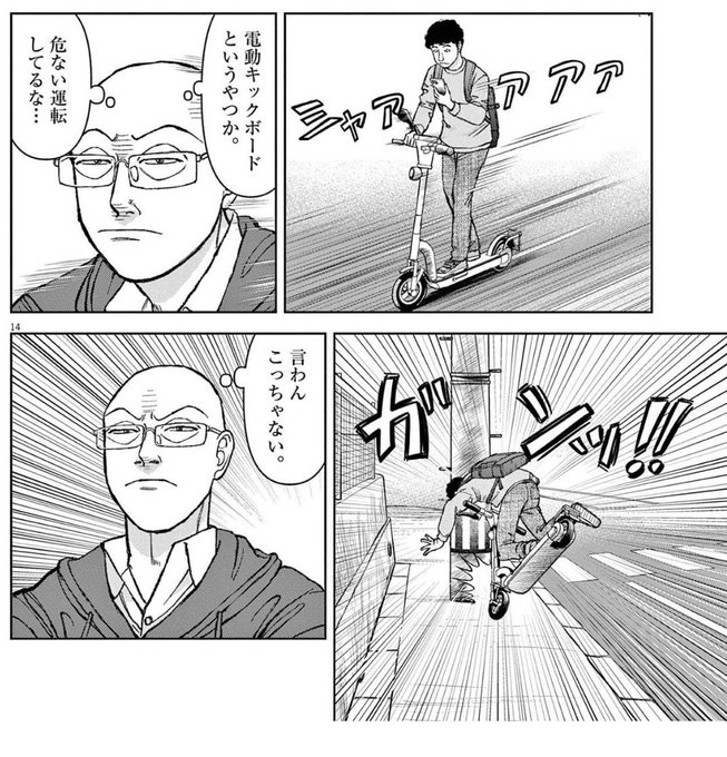 電動キックボードに何か一家言あるのか、作中で何度か登場させては自爆させてる(*´ω`*)