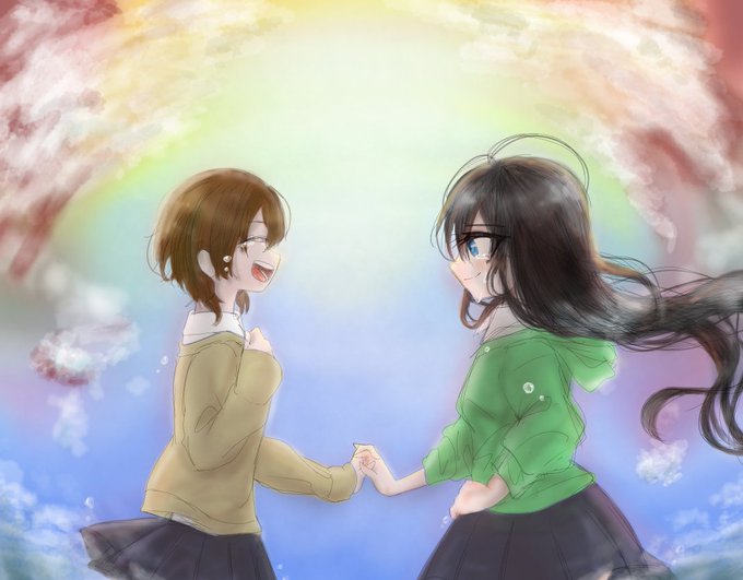 メンション失礼します!@ninaha3desuyo 様の線画をお借りしました!キラキラペン使うの楽しくてめっちゃ使っちゃった()一応周りの輪っか(?)はキミノヨゾラ哨戒班とDAYBREAKFRONTLINEを表してるつもり!