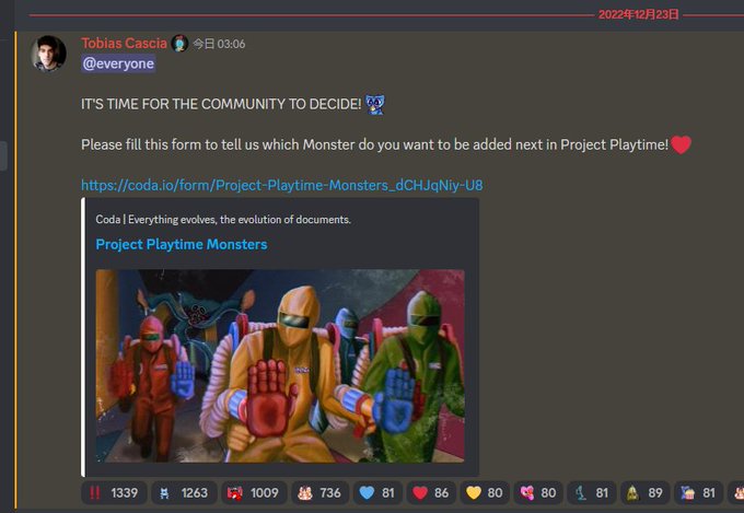 ポピープレイタイム公式Discordでプロジェクトプレイタイムの次に追加したいモンスターの投票やってる‼️🤩